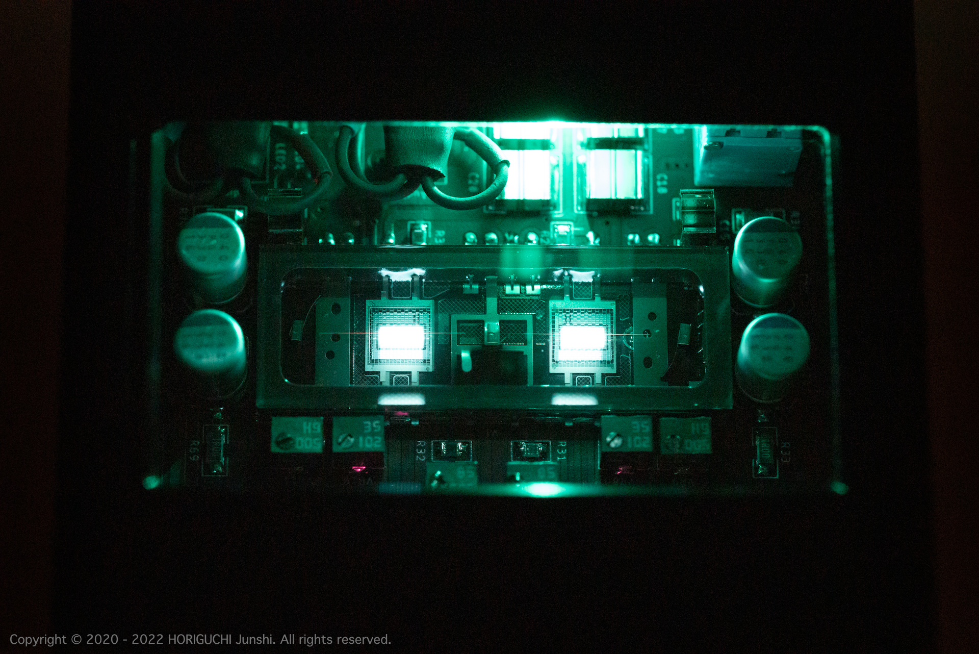 入力された音声信号は、無帰還の Nutube により増幅され、JFET のみで構成されたバッファ回路を通るため、出力には Nutube らしい歪みが含まれる。出力段は4並列の JFET を A 級駆動するため発熱し、消費電力の割に大きなパワーは得られない。