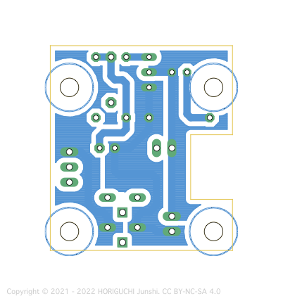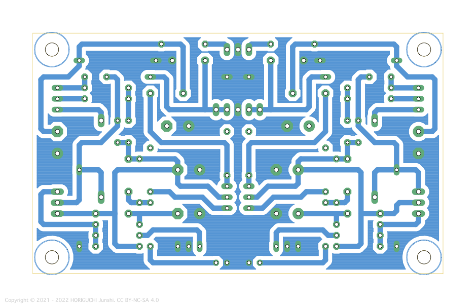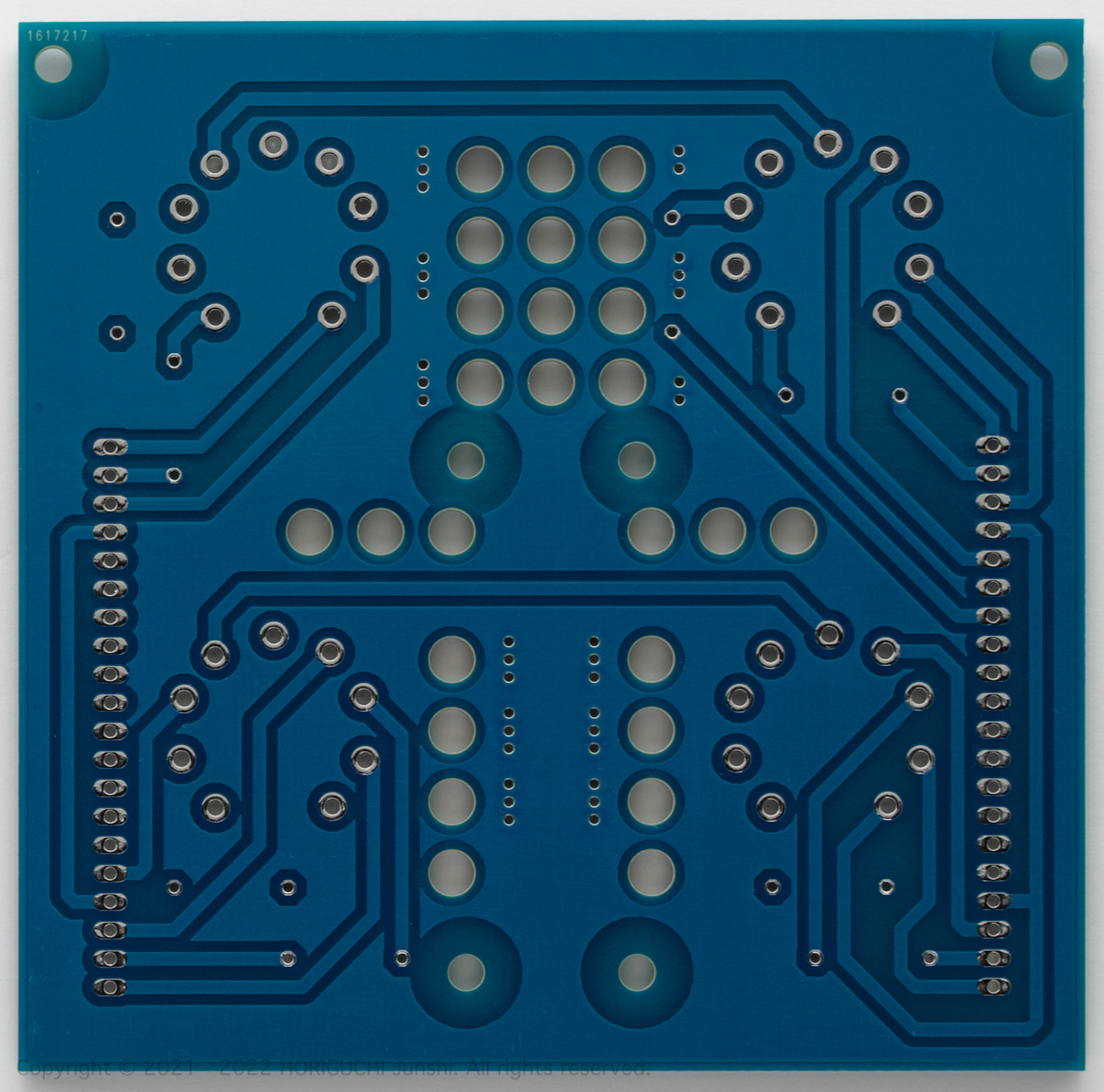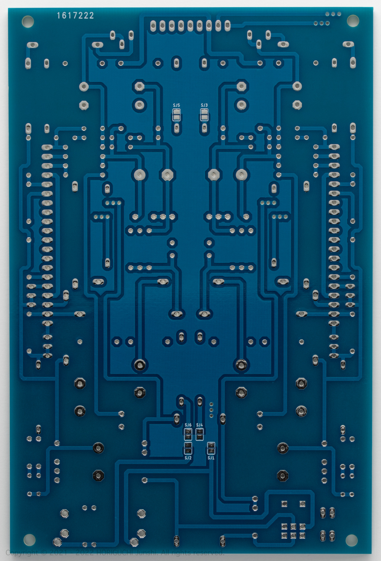 リップルフィルタを使用すると LM317 や LM337 の負荷応答特性を無駄にし、モーターボーディングが起きやすくなることがあるようなので、最終的にはリップルフィルタを削除した。リップルフィルタを使用しない場合は、R9, C11, D6, Q2 と R18, C12, D13, Q4 を未実装とし、基板上の Q2 と Q4 のそれぞれのソースとドレインをニッケルメッキ線などでバイパスさせる。