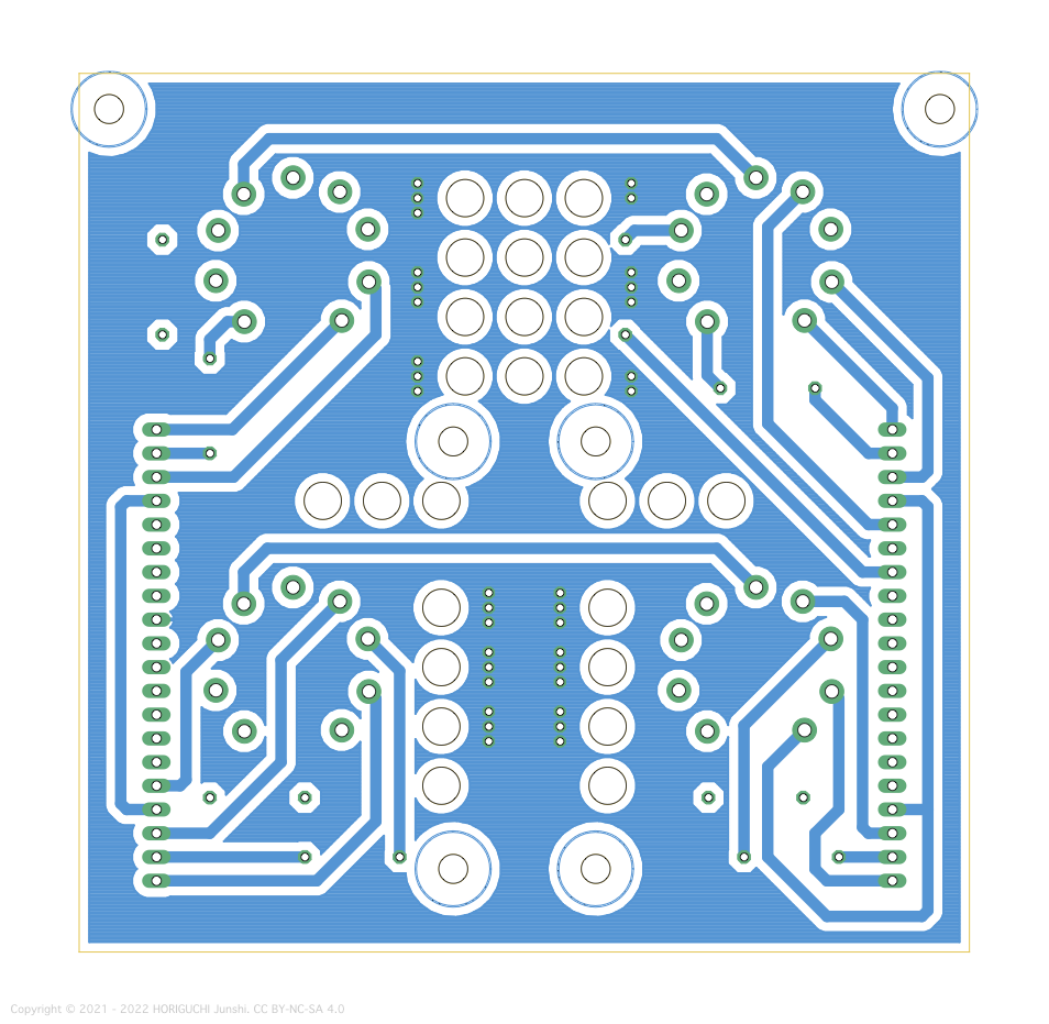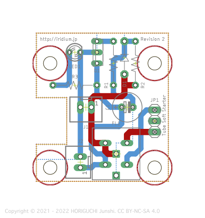 出力電圧の調整は、正電圧側は VR1 でおこない、負電圧側は VR2 でおこなう。動作中は基板上の各所に、最大 200V 程度の高電圧が印加されるので感電には十分に注意する。