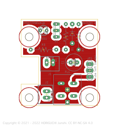 当モジュールは、秋月電子の「入出力2.5V~15V 最大1.5A 同期整流式昇降圧型スイッチング電源モジュールキット LTC3111使用」(AE-LTC3111) と一緒に使用することを前提に設計しており、基板を積み重ねて実装することができる。