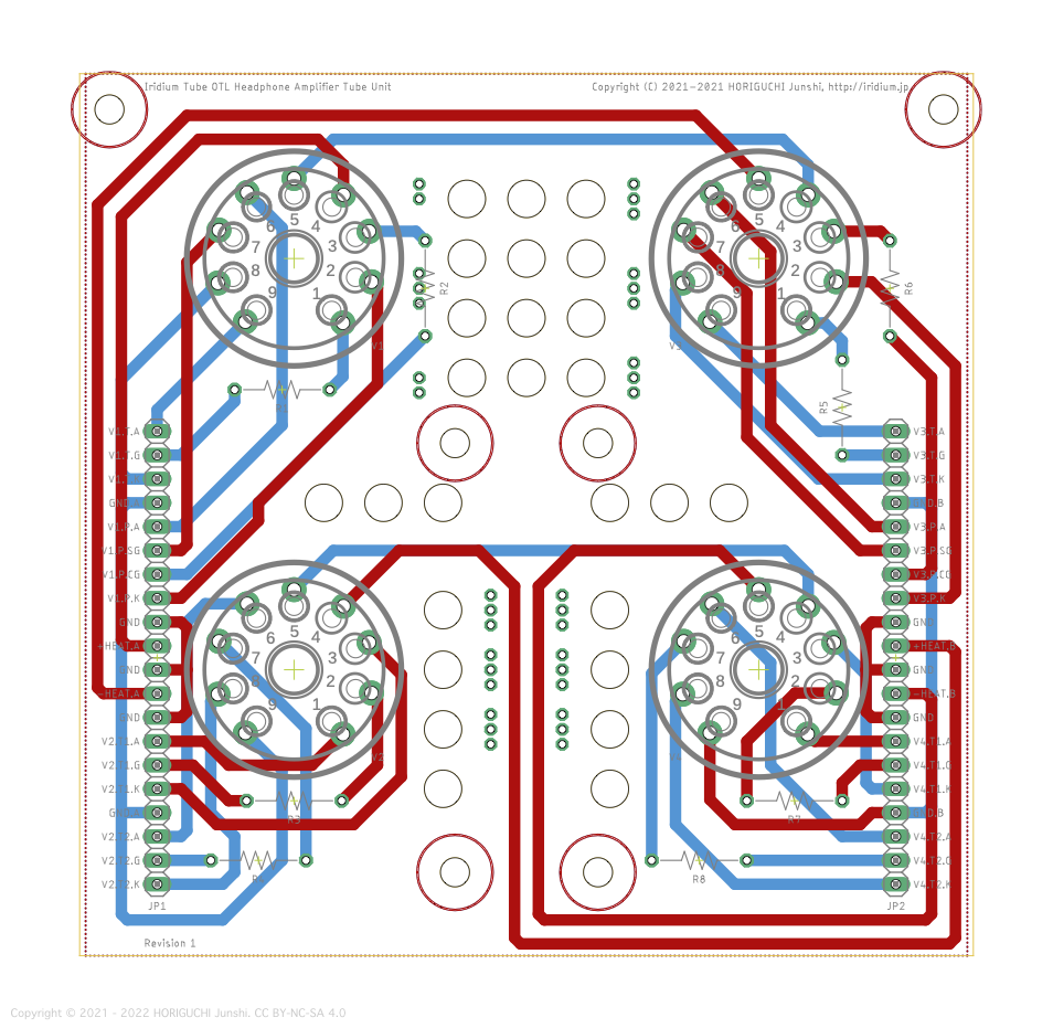 真空管の発振防止のためにグリッド抵抗は当モジュールに実装する。