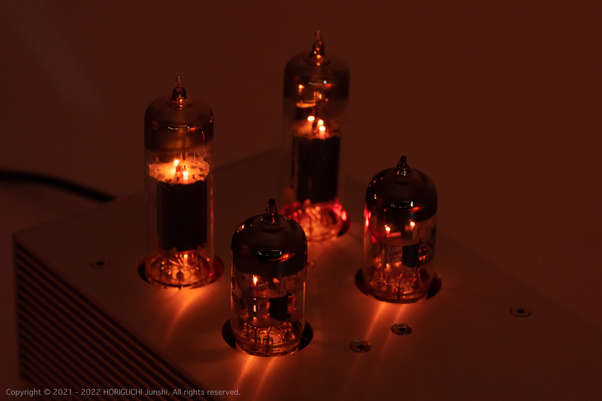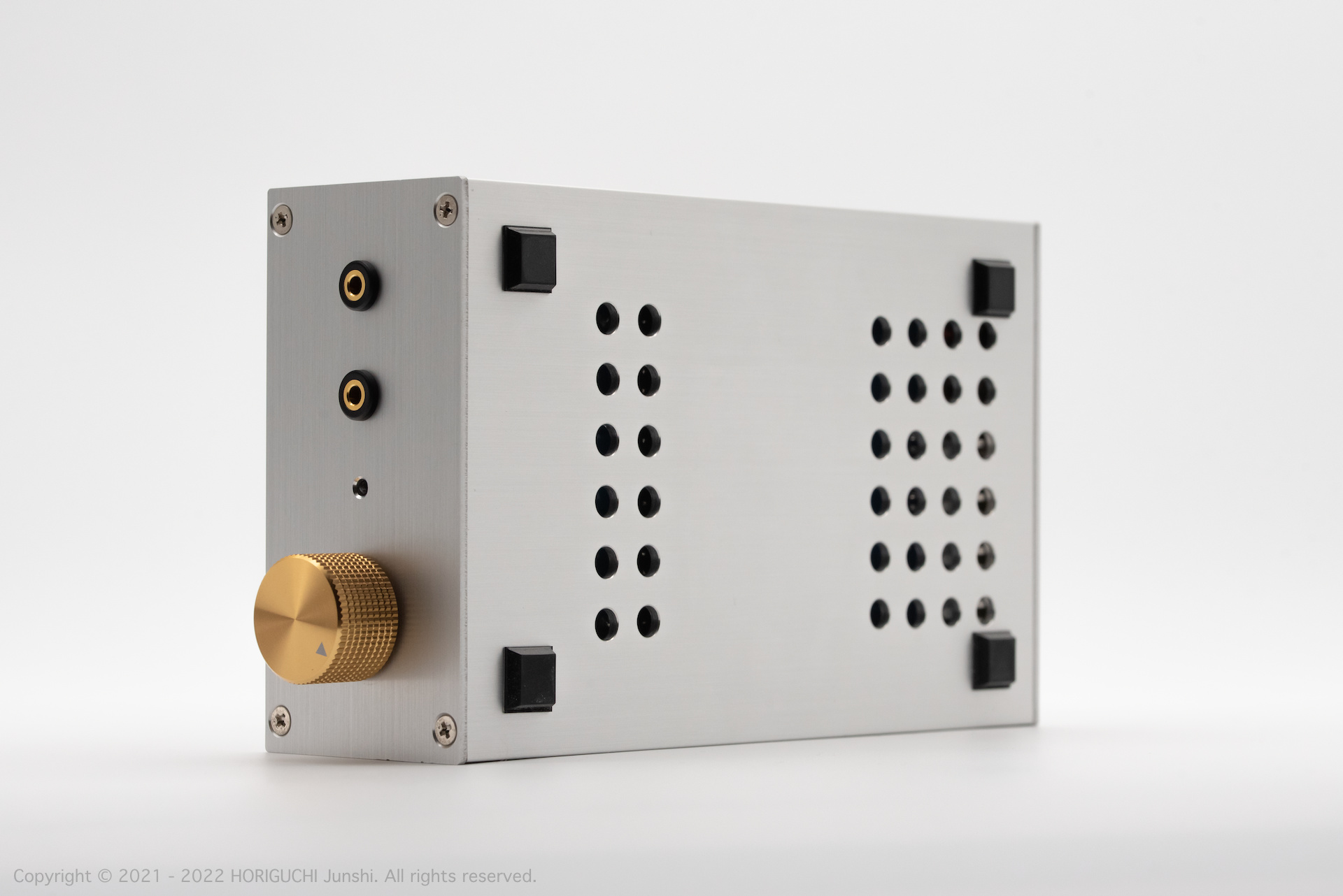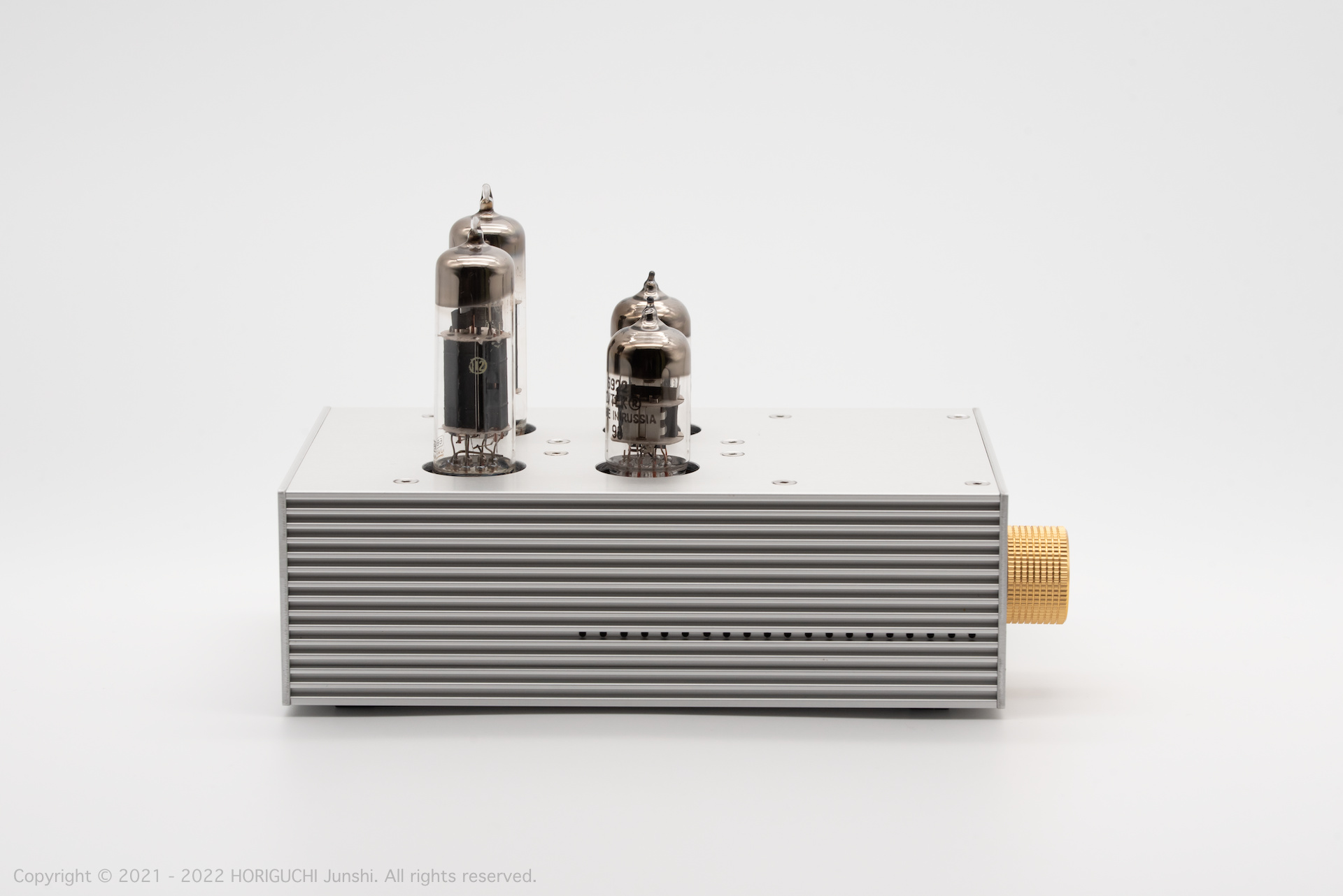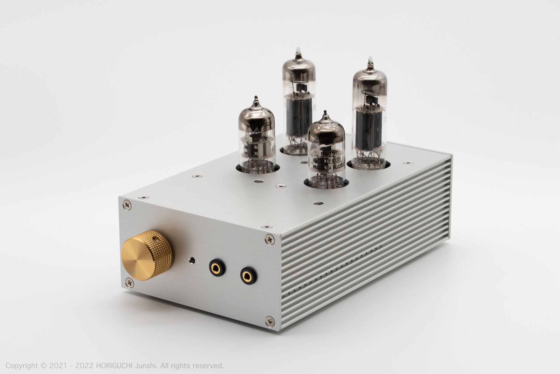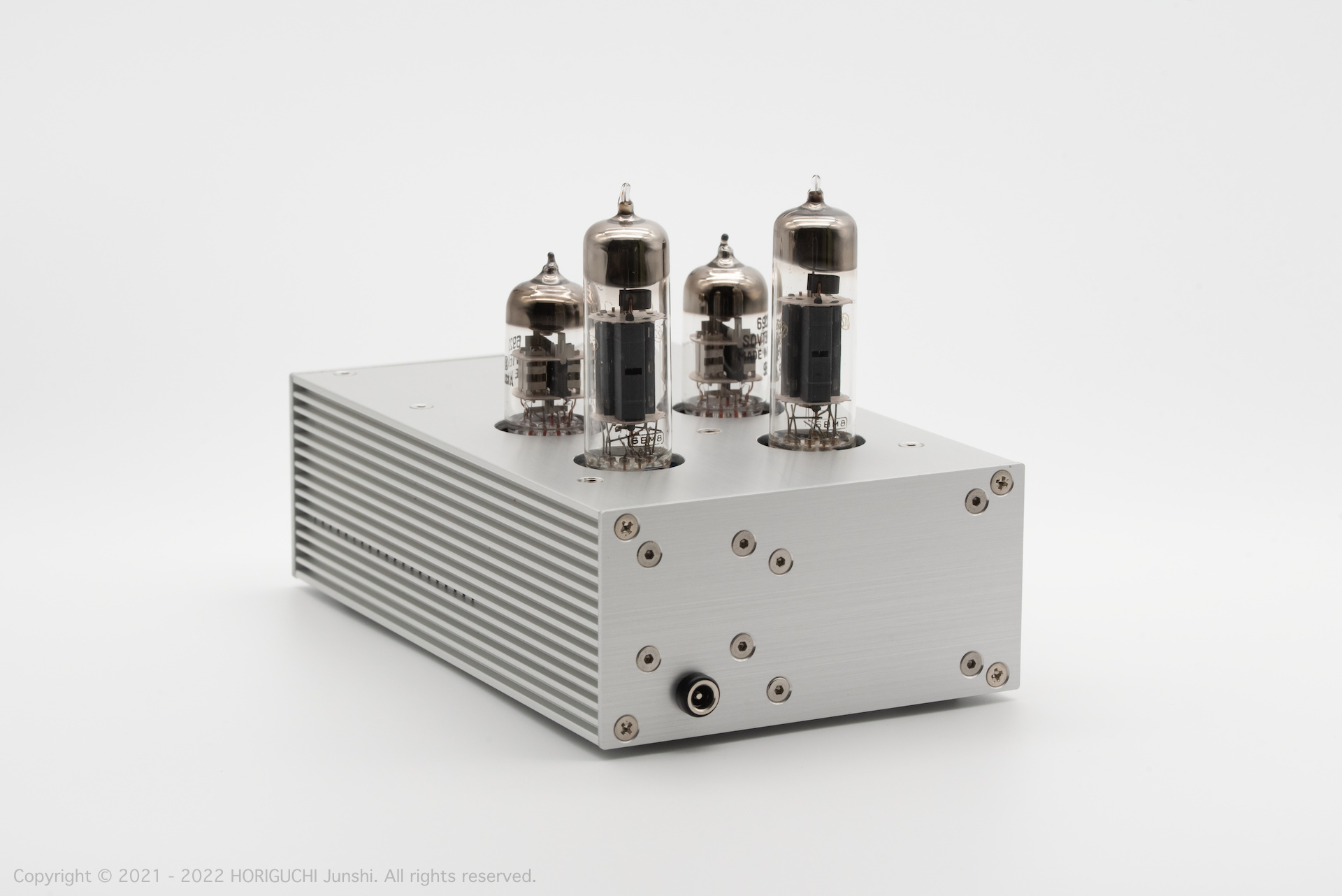 DC 12V/5A を電源としてもちいているが、オペアンプとのハイブリッド駆動ではなく、±90V の高電圧を内部で発生させ真空管のみで増幅・出力をおこなう。出力段を含めてトランスを一切使用せず、6922 をもちいて直接負荷を A 級駆動するため、消費電力の割に大きなパワーは得られない。