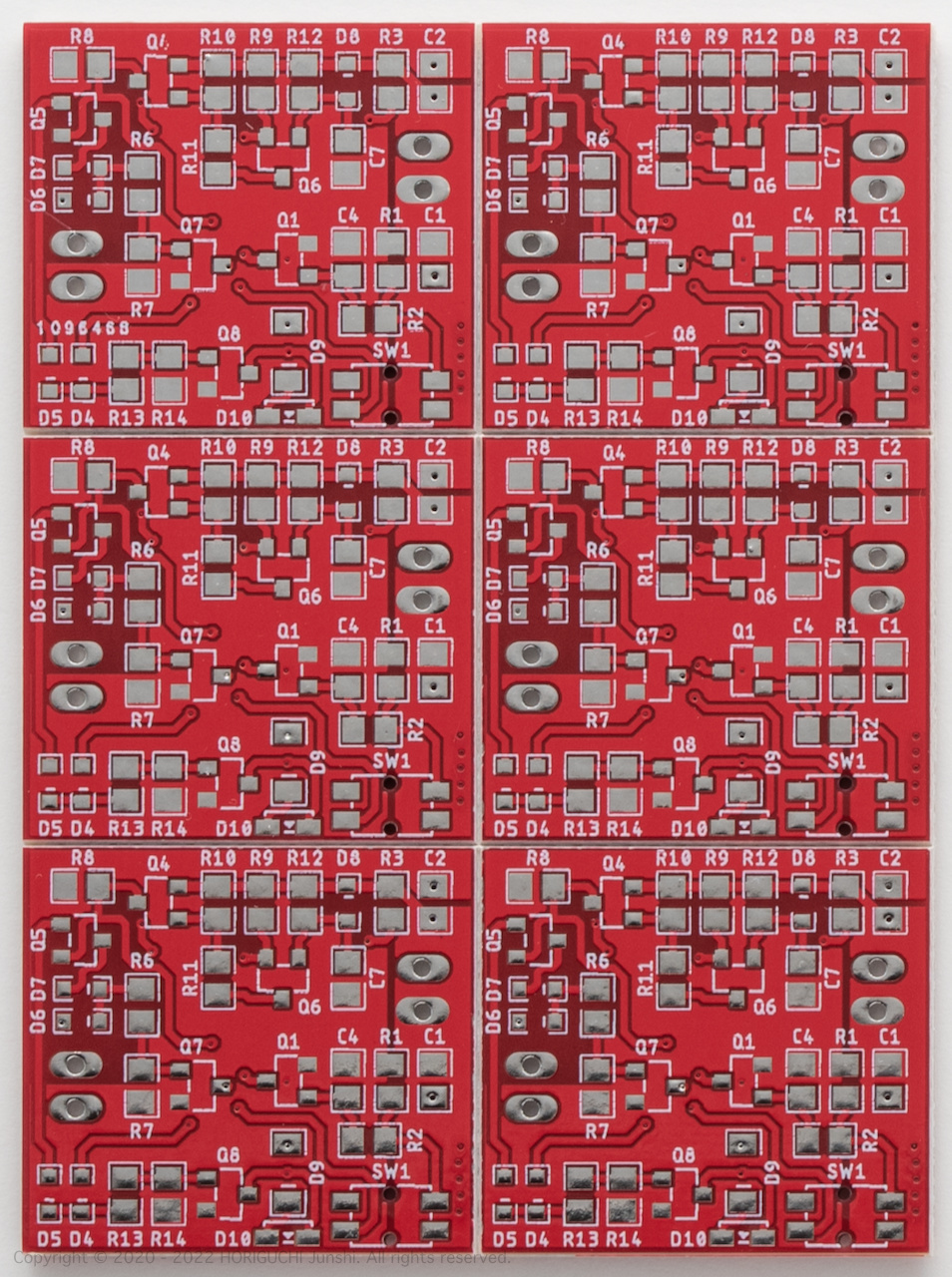 手ハンダで両面実装を楽しめるちょうど良いサイズである。