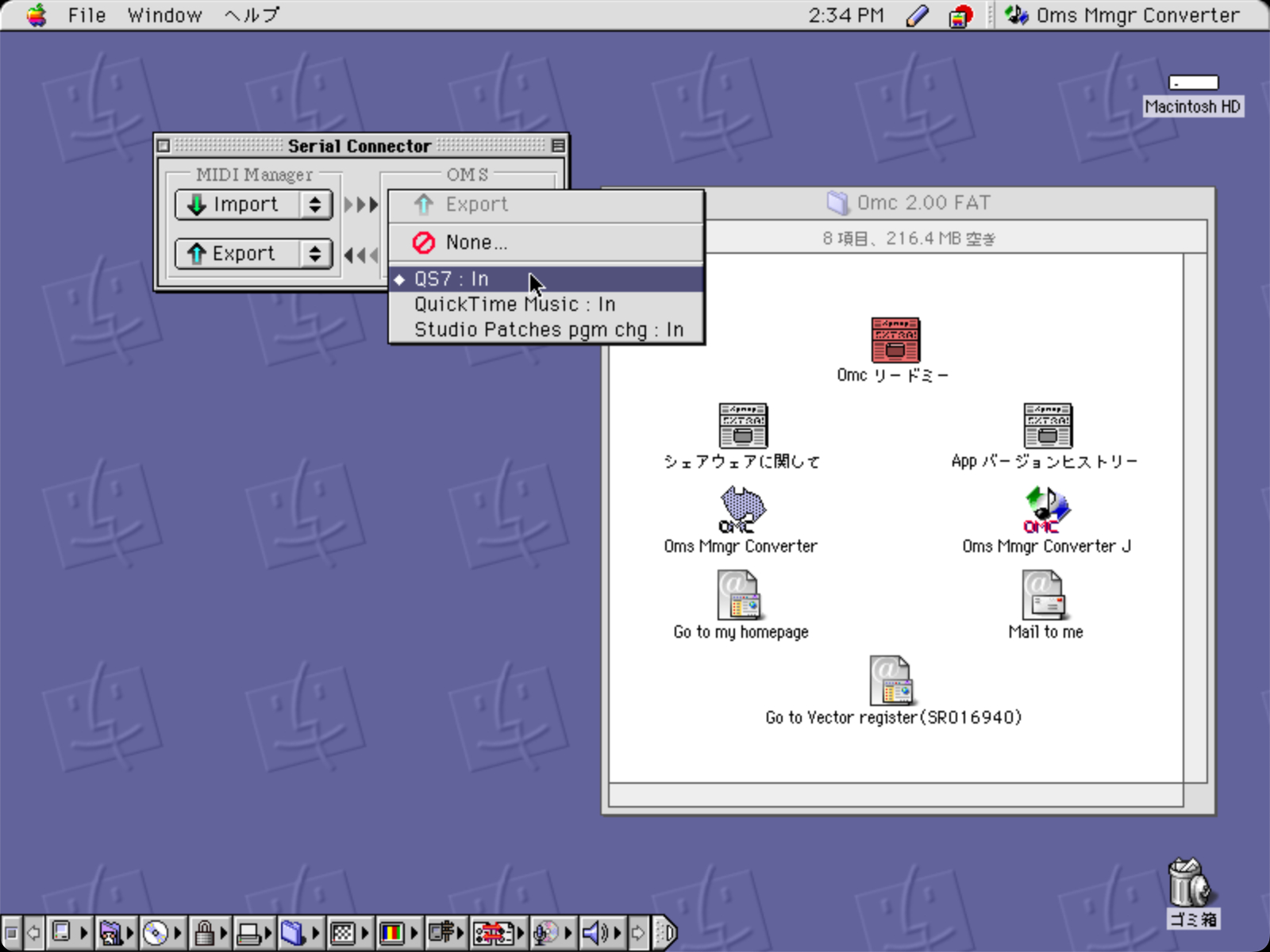 downloadダウンロード (Omc_2.00_FAT.sea.bin / StuffIt フォーマット / 314,368 Bytes)